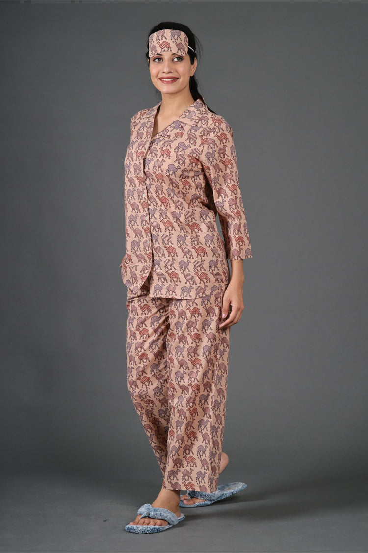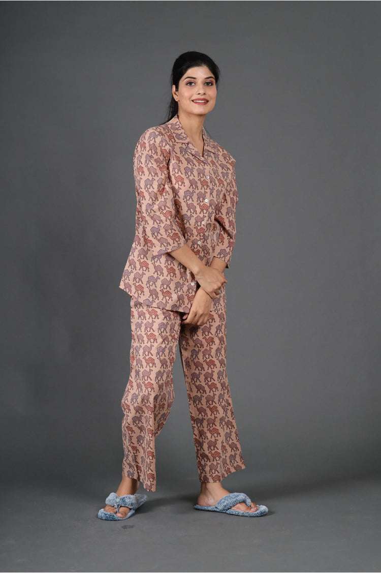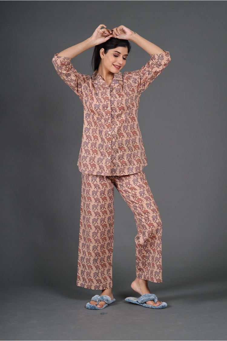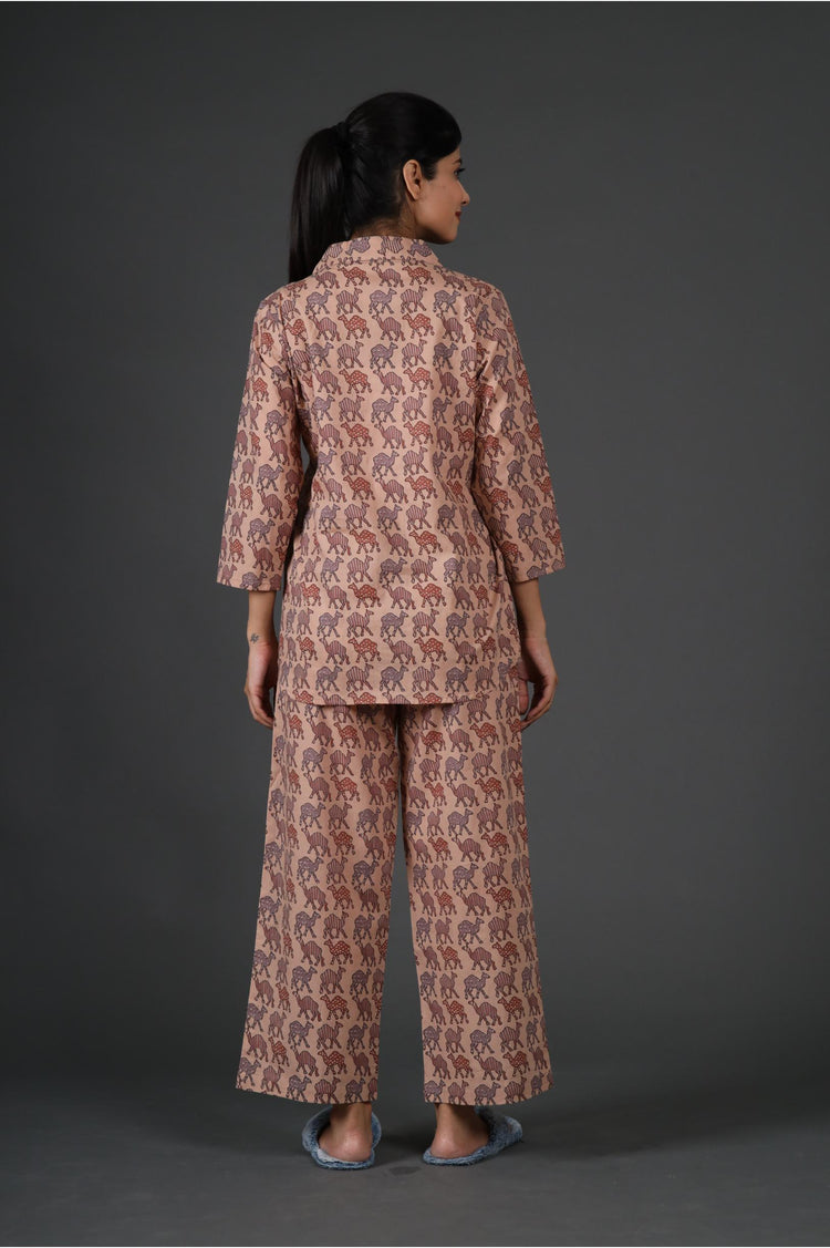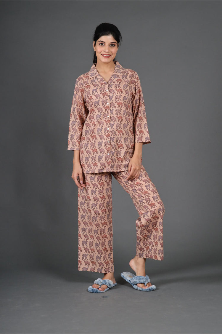 This set is crafted in our best block printed Buta fabric, it includes shirt and pajamas, wear this comfortable set all day while doing WFH.