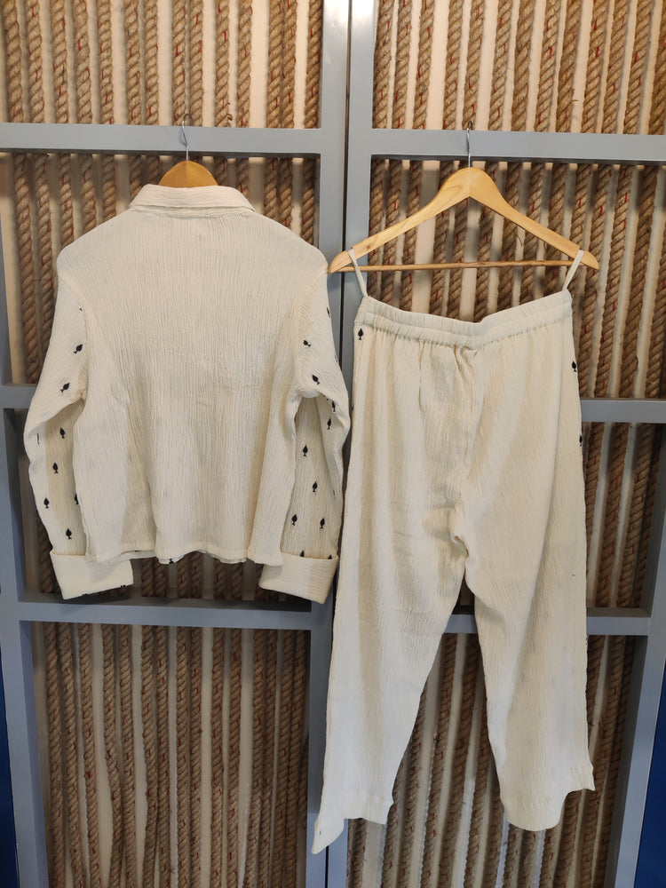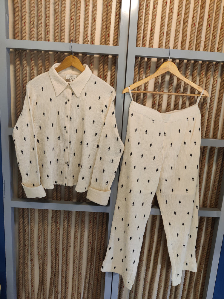 Introducing our newest Cotton Crepe Embroidered Co-ord Set . A sophisticated and stylish choice. Crafted with precision and premium materials, this set elevates your wardrobe with its luxurious texture and intricate craftsmanship. Enjoy the soft and breathable qualities of the premium cotton crepe fabric, while the intricate embroidery adds timeless charm. Perfect for any occasion, from casual outings to workwear.