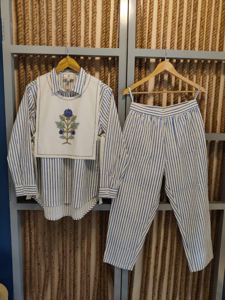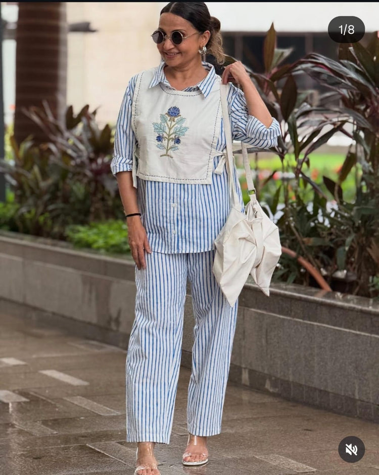 Upgrade your wardrobe with our Vest Shirt blue! This stylish Striped Shirt comes with a side Knot Vest, offering versatility and added warmth. Made with high-quality materials, this shirt is perfect for any occasion. Experience effortless style and comfort with our Vest Shirt blue.