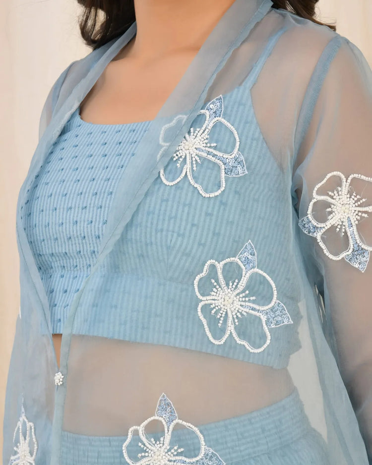 - Product Includes : Inner , Pants and Jacket with Pearl handwork