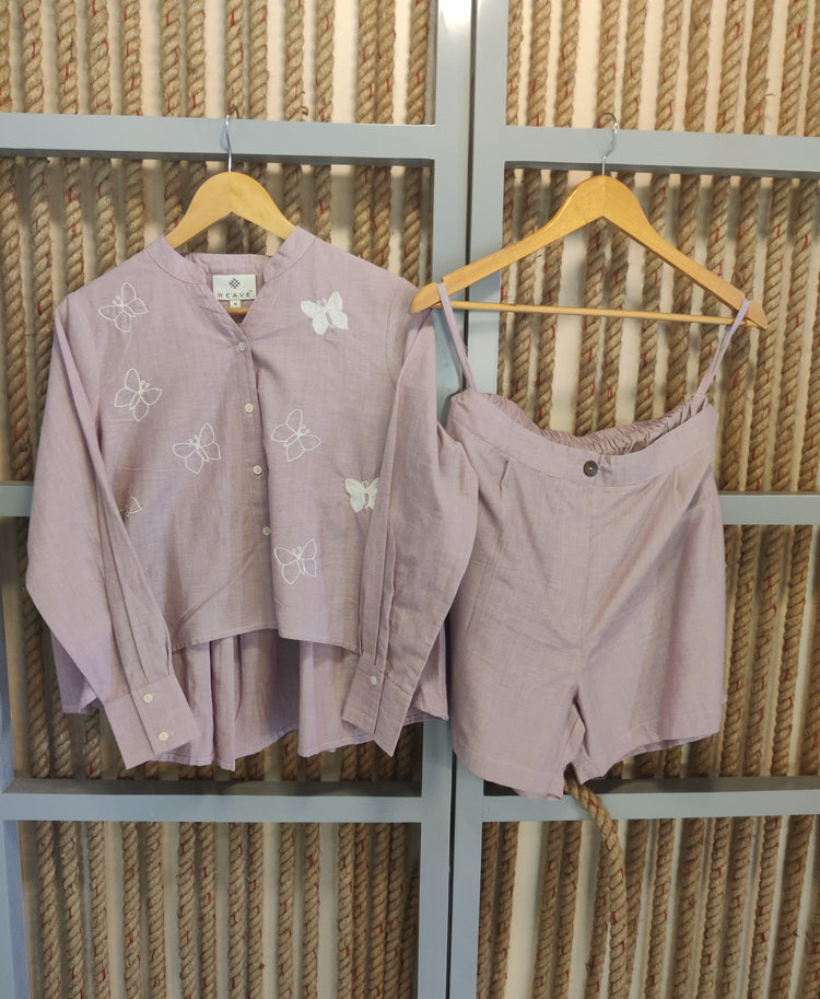 Unfold your style with this breezy two-piece set, featuring a top adorned with intricate embroidery and perfectly matched shorts. Designed for comfort and charm, this outfit is ideal for casual brunches, beach strolls, or weekend getaways. Its lightweight feel and effortless silhouette make it a must-have for warm-weather styling.