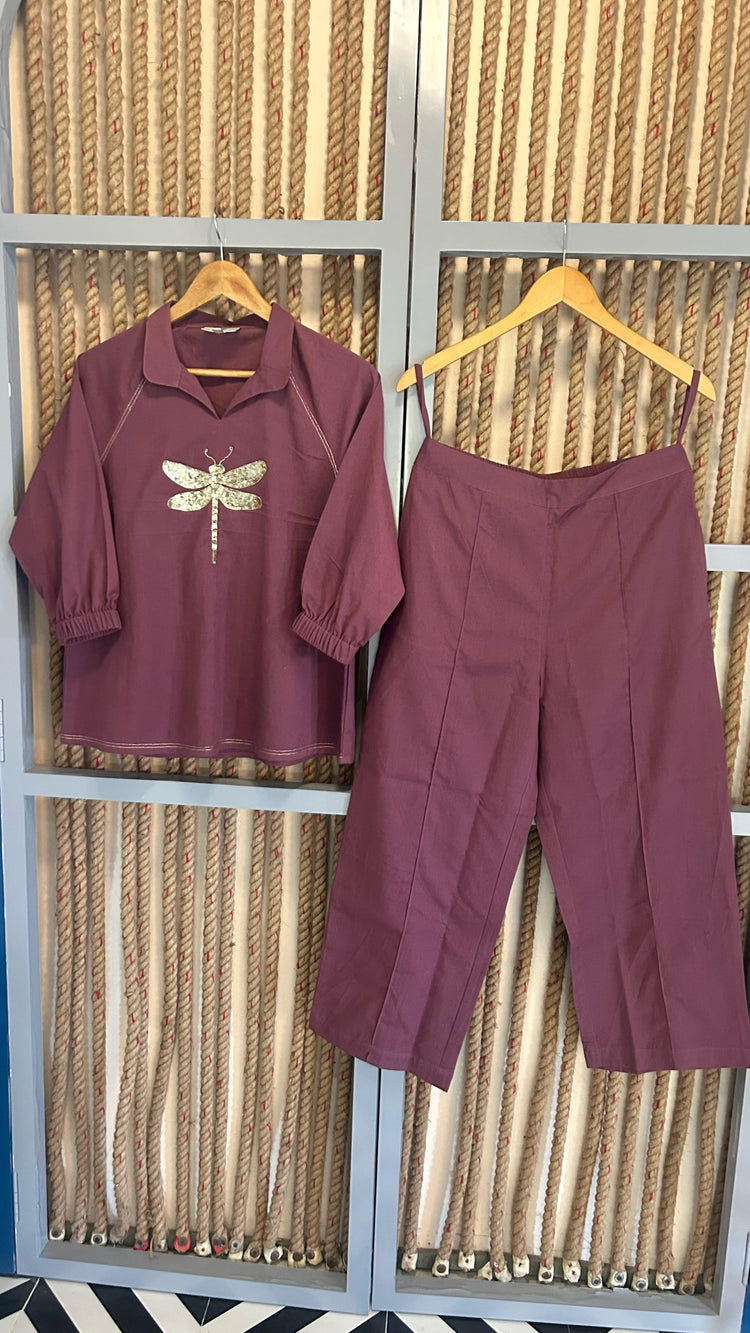 Experience elegance and style with Dream Fly Hand Embroidered Top and Plain Pant set, featuring delicate pin tucks.