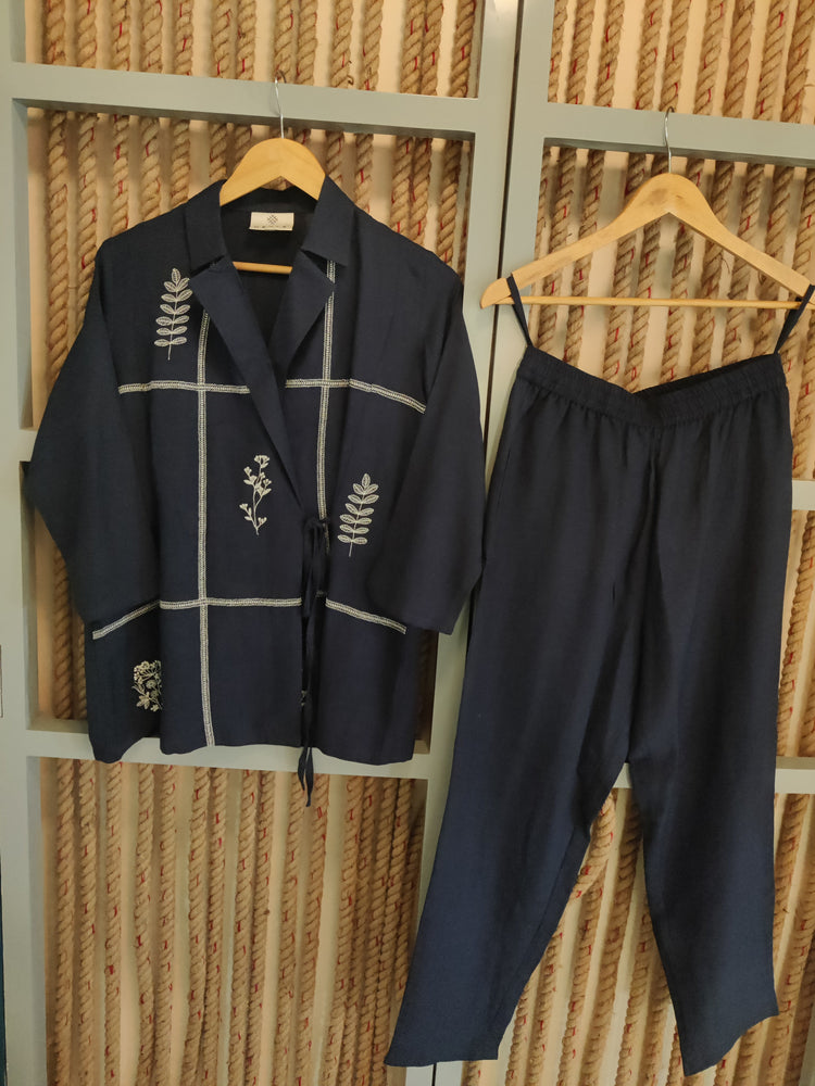 Navy Blazer Embroidered Co-ord Set
