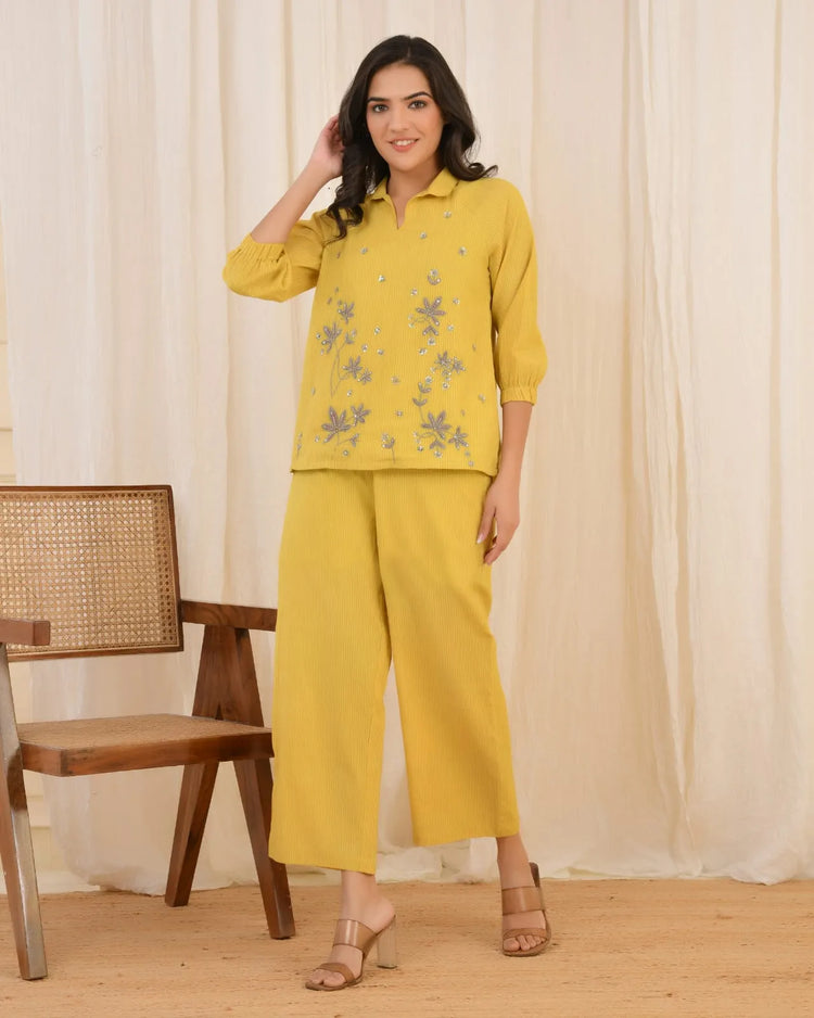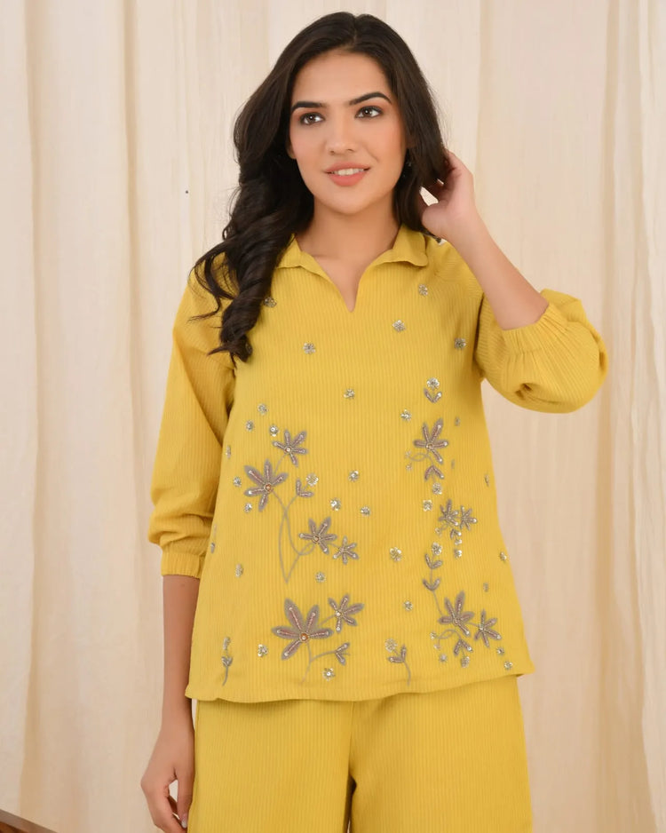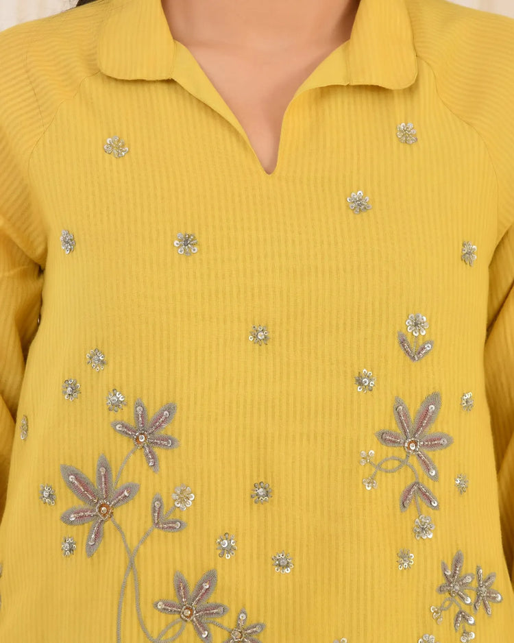 Crafted in breathable fabrics, this collection brings together cozy comfort and chic silhouettes for effortless dressing. With bold handwork embroideries on collar, delicate smocking details, and soothing pastel shades, each piece is designed to feel as good as it looks.