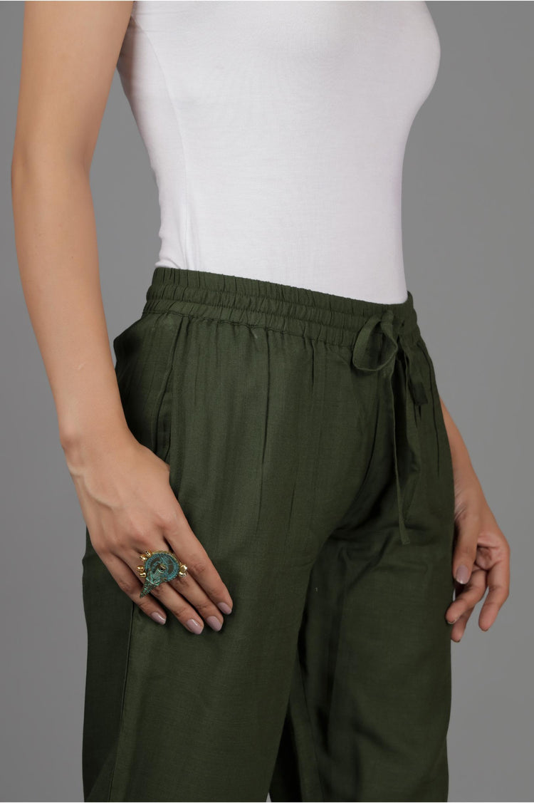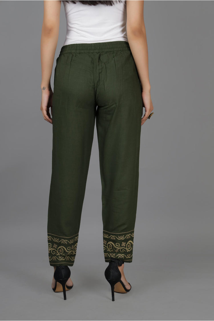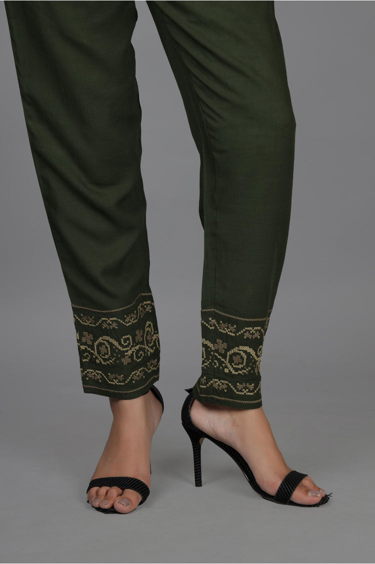 Green embroidered pant