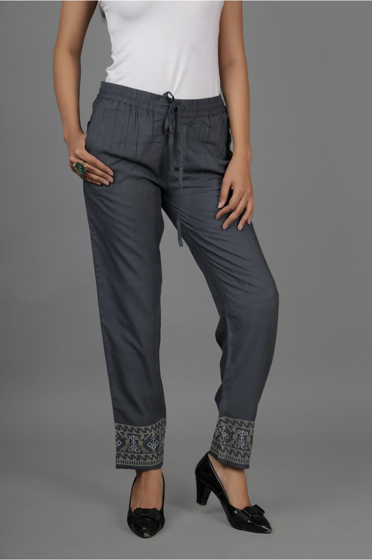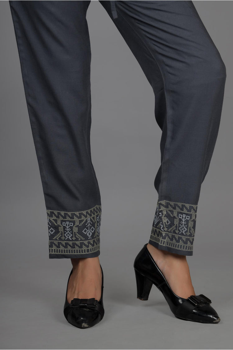 Grey embroidered pant