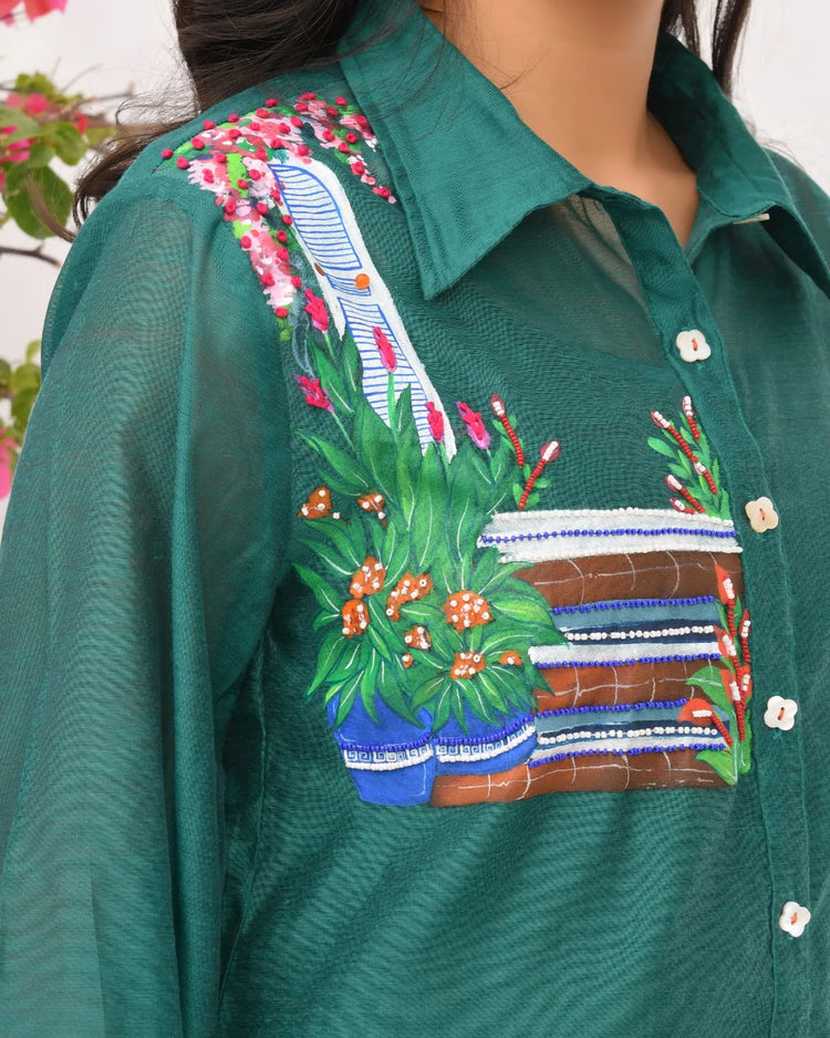 From vibrant cityscapes to textured hand-embellishments, it’s a wearable canvas of Mediterranean dreams. Designed in an easy silhouette, it’s perfect for a day brunch, vacation stroll, or simply standing out with effortless elegance.