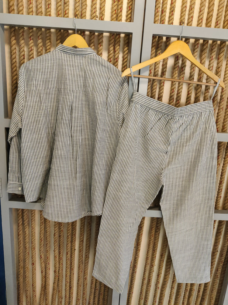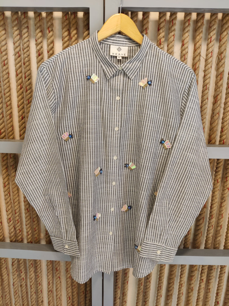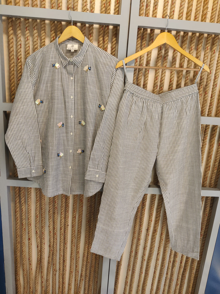 Embrace effortless elegance with the River Bee Co-ord Set, featuring a yarn-dyed shirt adorned with exquisite hand embroidery. Perfect for casual outings or relaxed weekends, this stylish ensemble combines comfort with artisanal charm, making it a go-to choice for your wardrobe.