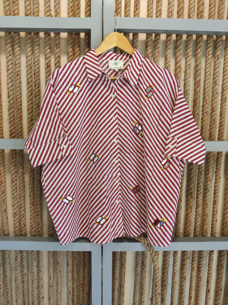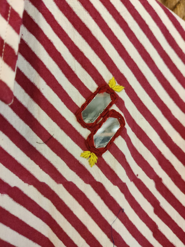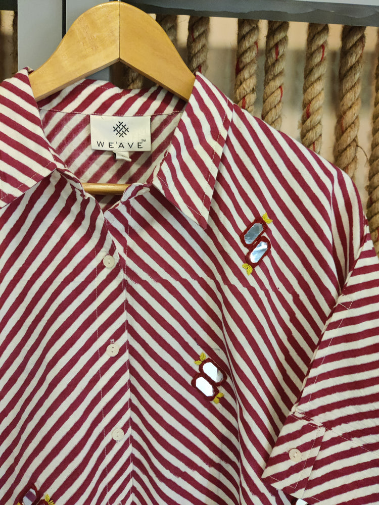 Red Striped Mirror Work Shirt