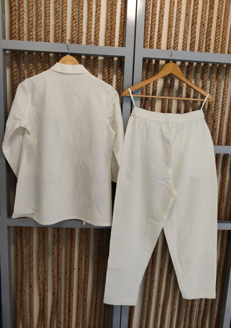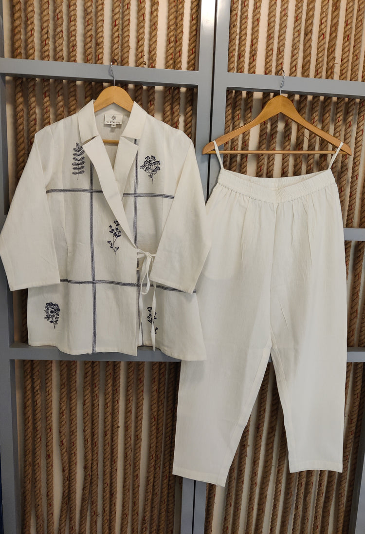 Off White Blazer Embroidered Co - ord Set