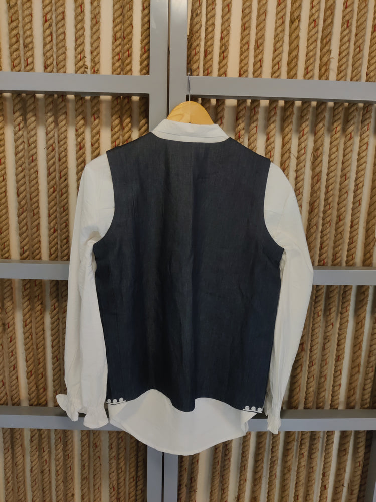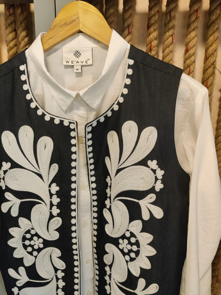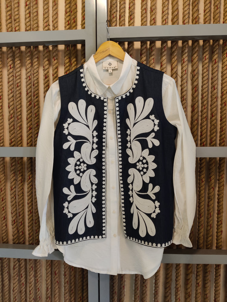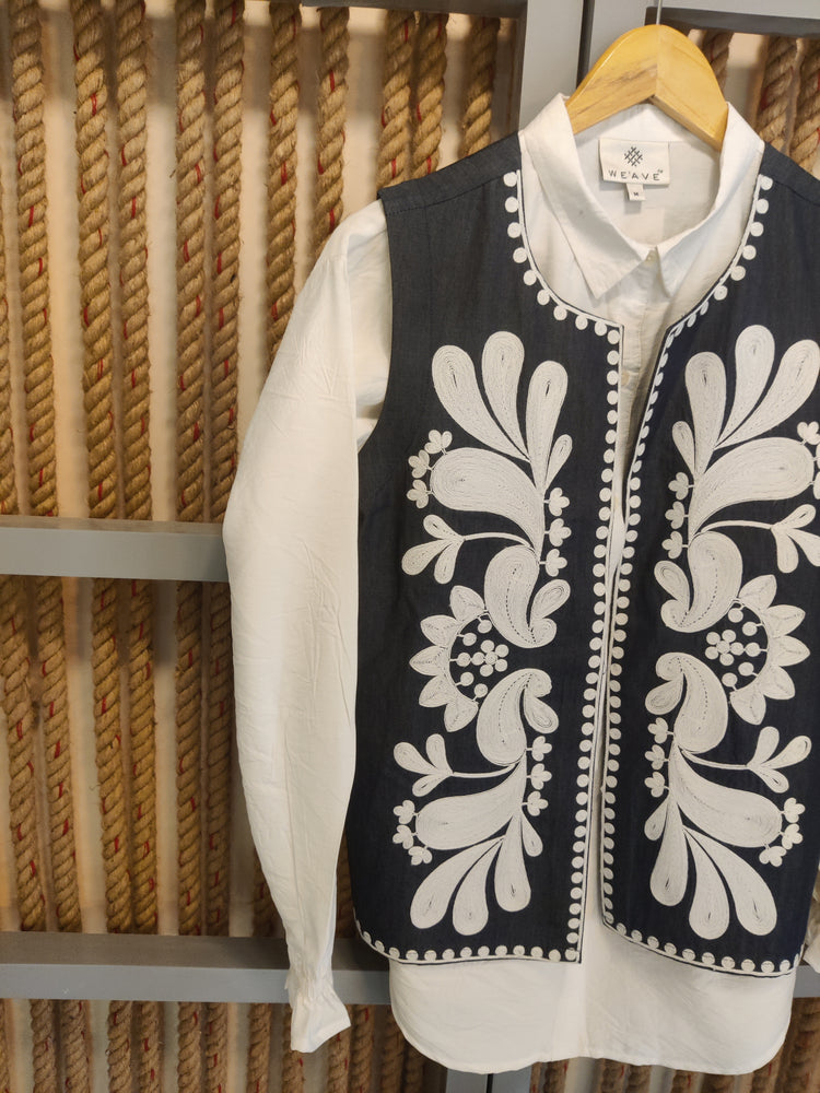 - Product Includes : White Shirt With Embroidered Denim Navy Jacket
