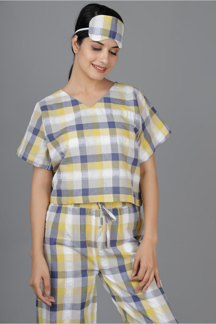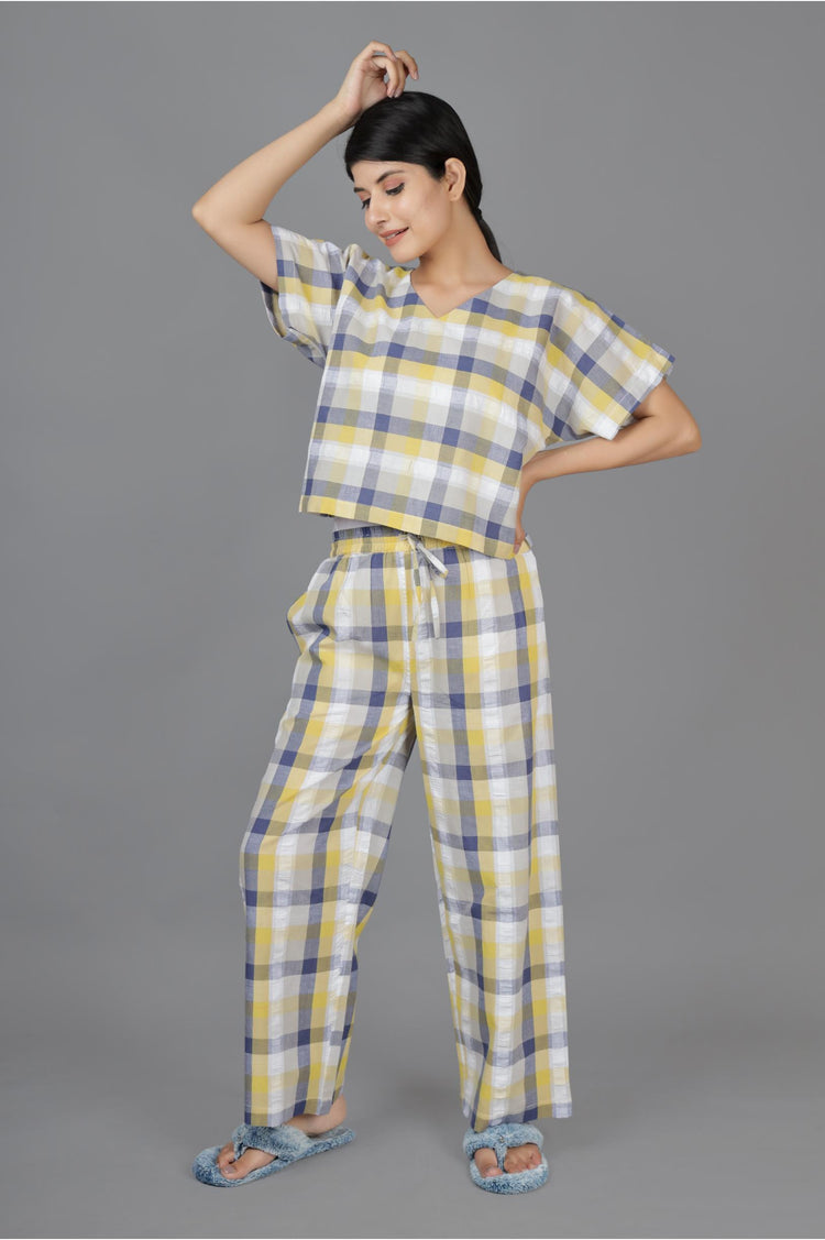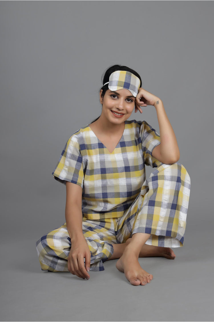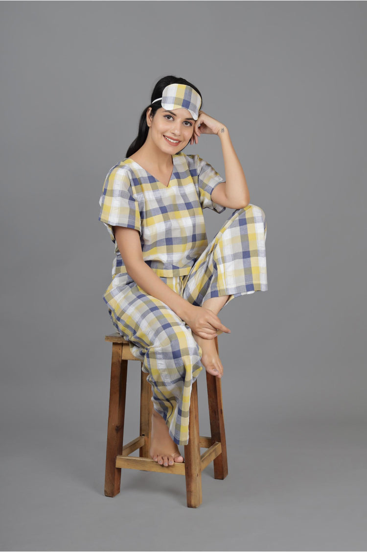 Yellow Blue Checks Jama Set