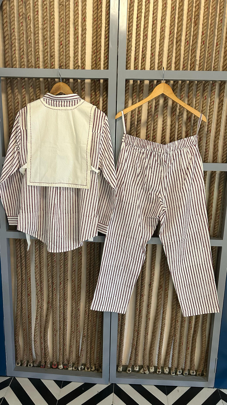 Upgrade your wardrobe with our Vest Shirt maroon! This stylish Striped Shirt comes with a side Knot Vest, offering versatility and added warmth. Made with high-quality materials, this shirt is perfect for any occasion. Experience effortless style and comfort with our Vest Shirt maroon.